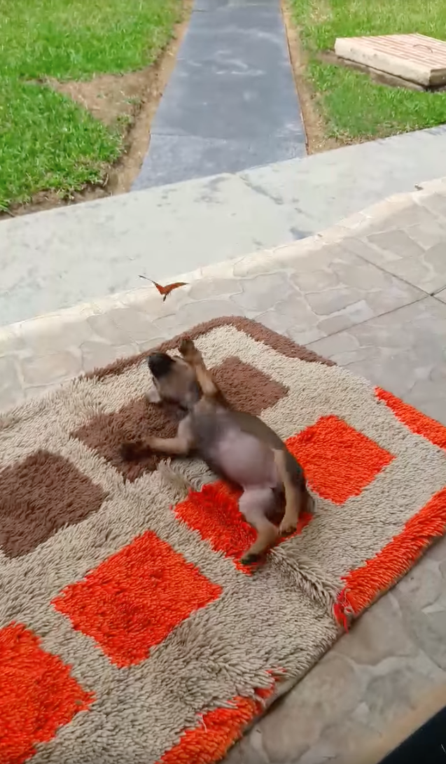 迪士尼公主的靈魂?蝴蝶遇小汪汪「不飛還玩鬧」 主人笑:最可愛兩小無猜❤️