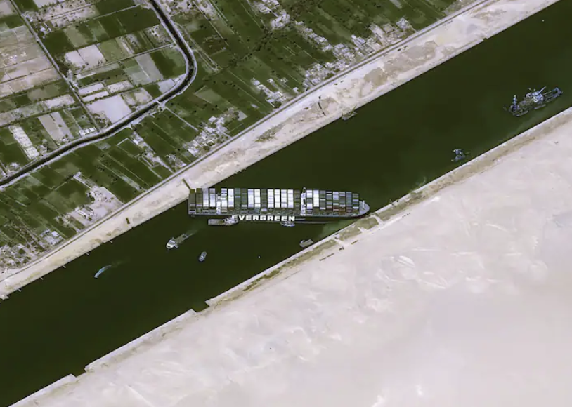 「長賜號」長400公尺、寬59公尺,可以載送2萬多個20尺貨櫃。這艘貨櫃輪經過蘇伊士運河、穿過地中海時發生意外,疑似遭遇瞬間強風吹襲,最後船身偏離航道,觸底擱淺。這次意外導致100多艘船隻被卡住進退兩難。