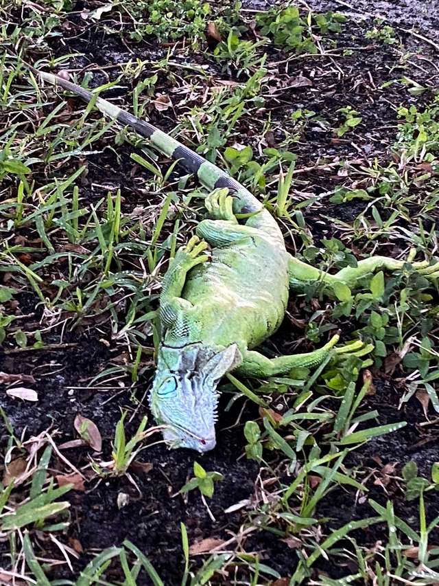 2021年03月27日最近佛羅里達州部分地區遭遇寒流,溫度迎來新低。人們可以增加衣物保暖,野外的動物們就不一樣了。當地女子Lori Bale家附近有一隻綠鬣蜥,她經常看到牠,還給牠取名為Iggy。這次氣溫下降,Iggy該怎麼辦呢?