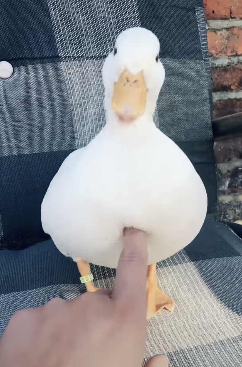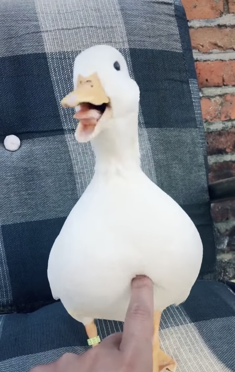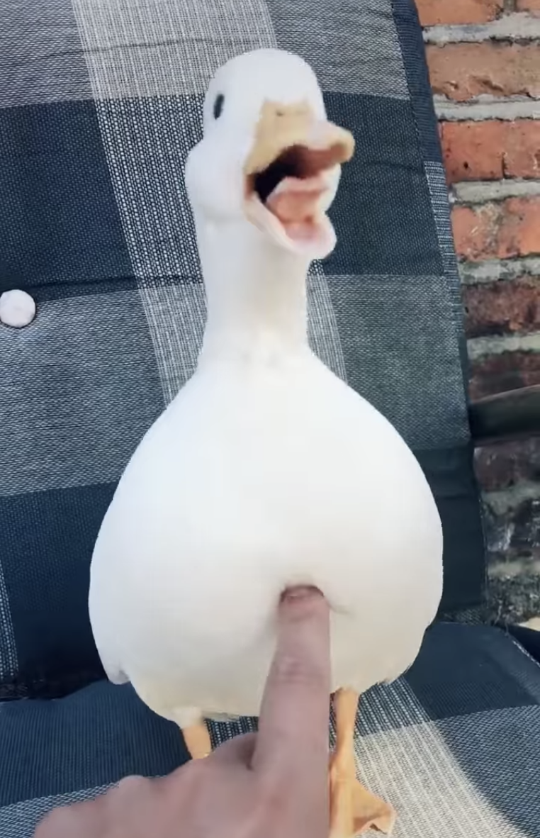 2021年03月27日抖音用戶@you_ducky上傳了一則搞笑小短片,內容是有一隻神奇的小白鴨,像是有訓練過的,手指壓到牠的胸膛,就像按到開關一樣,「呱呱呱呱呱」叫個不停,讓網友都笑翻說「真的是『鴨』到開關」。