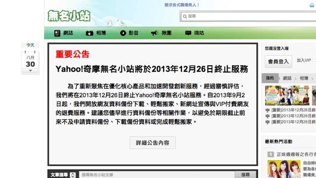 ▼2013年終止的「無名小站」,宣布終止的那時候真的讓無數人哀號,也是象徵一個青春世代的結束。