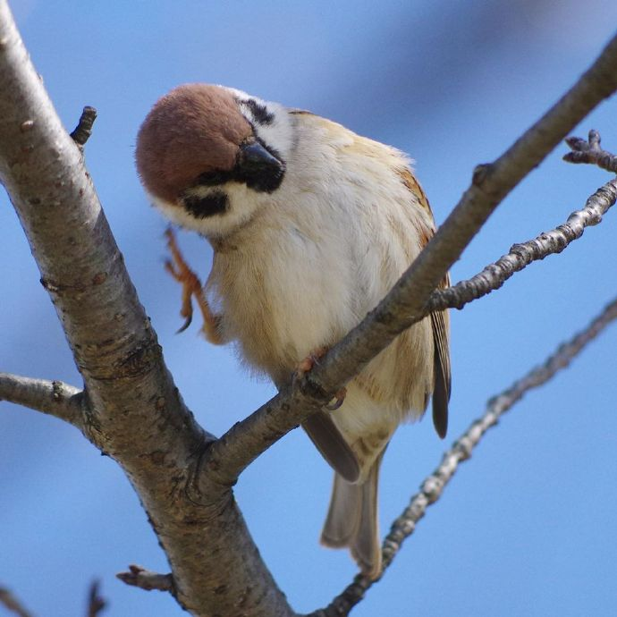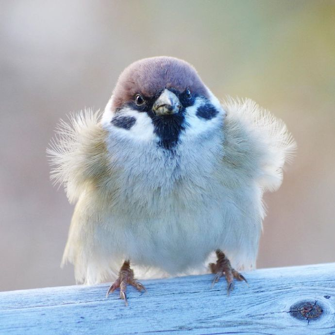 ▼天冷的時候麻雀肚子周圍會長出一團蓬鬆的毛毛。