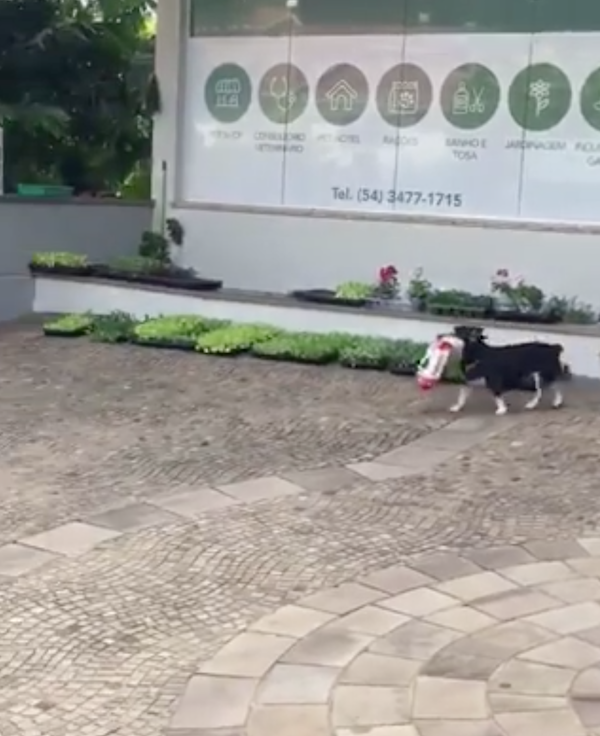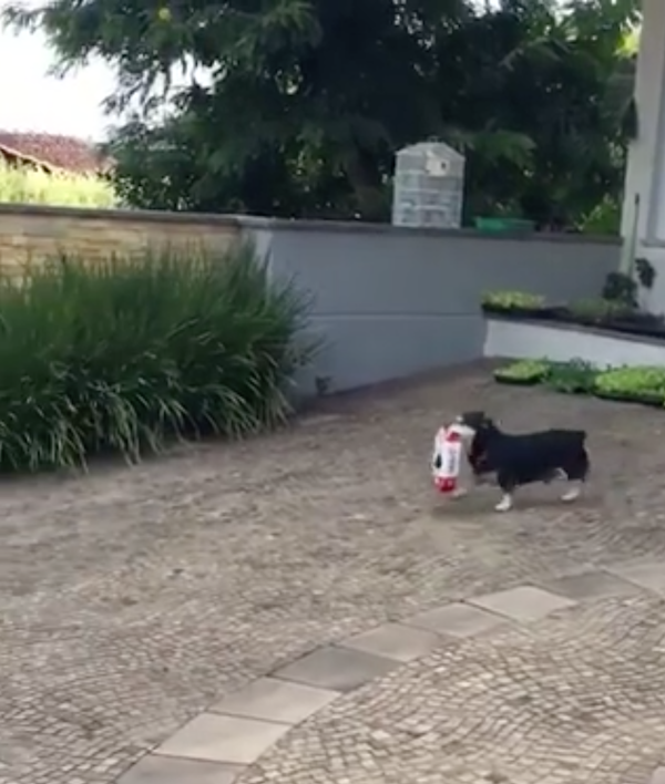 ▼這個小傢伙叼了一包狗糧,而且還昂頭挺胸,非常驕傲!
