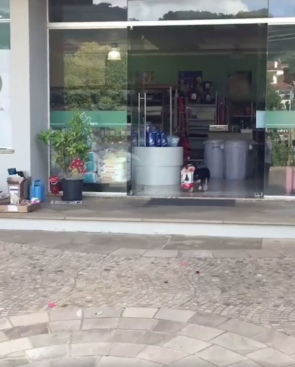 ▼自動門一開啟,商店裡走出的竟然不是顧客,而是一隻狗狗!