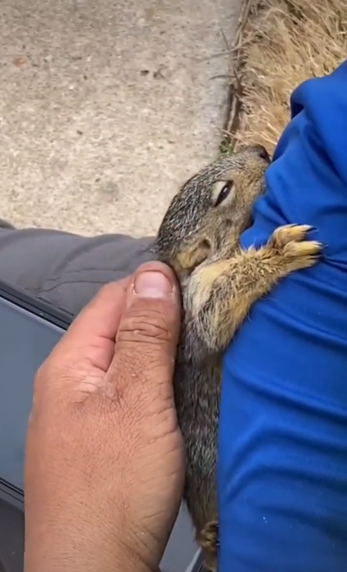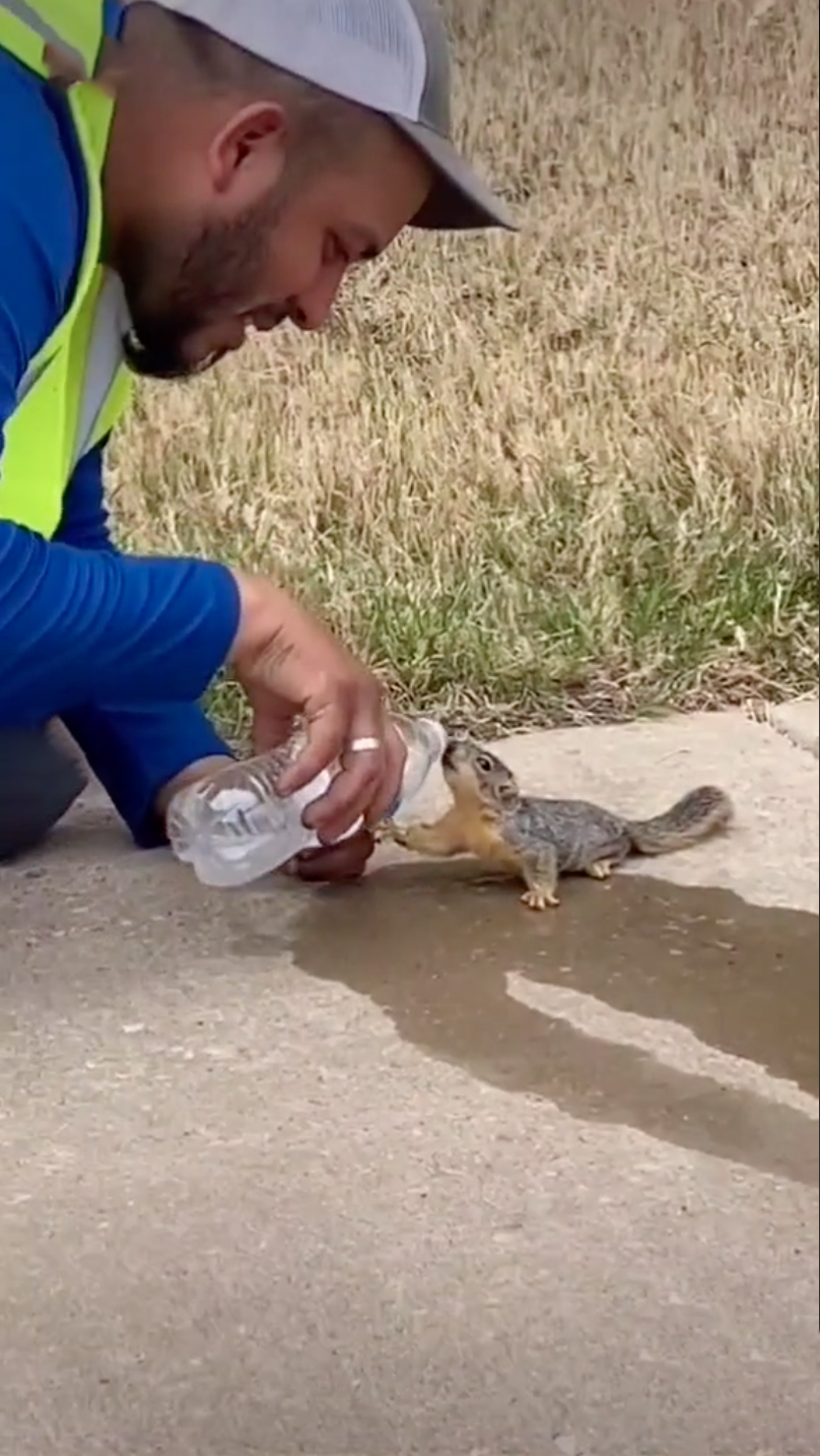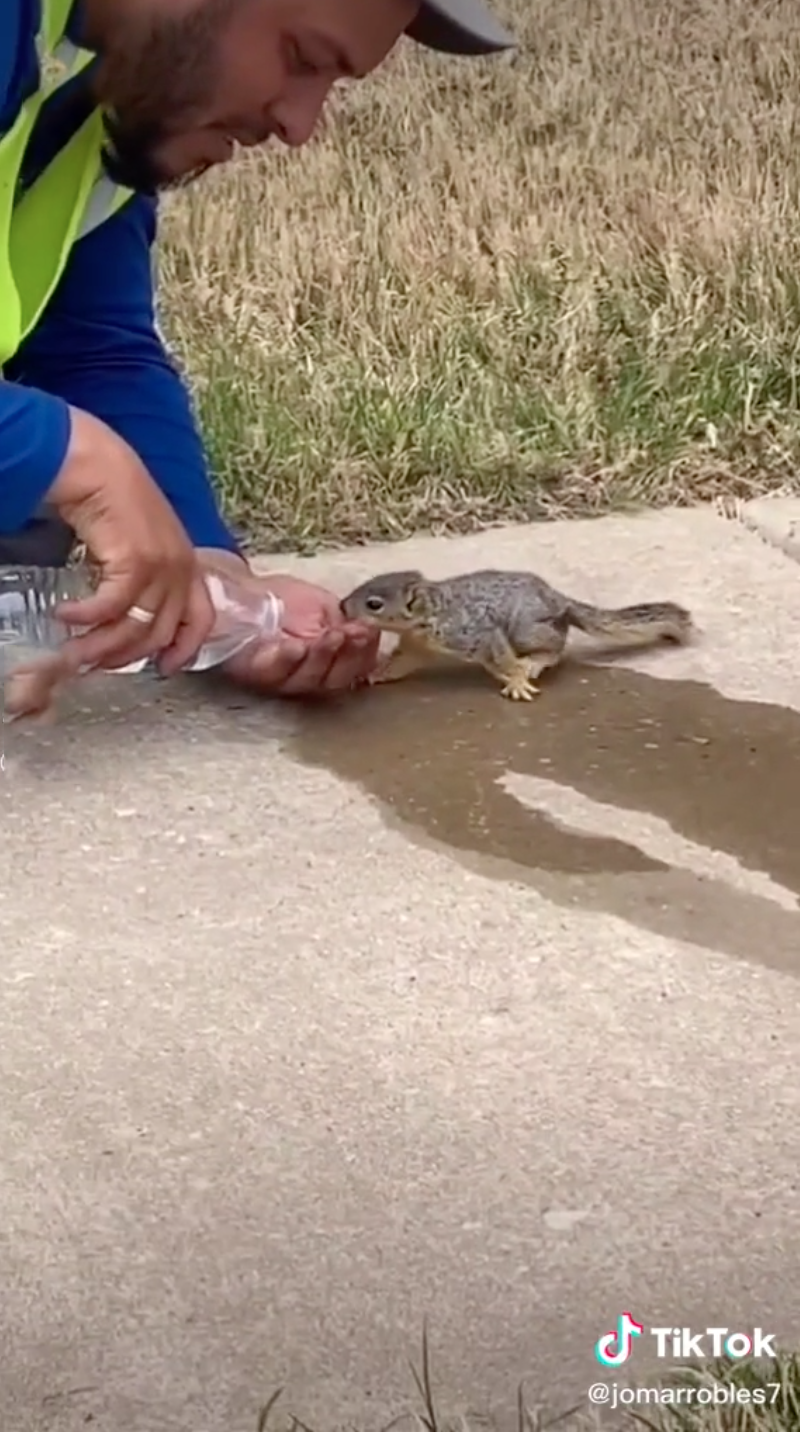 2021年04月08日天熱缺水的時候,野外的動物可能找不到水喝。美國德州一名網友Jomar Robles在公園工作,有一天他上班時,一隻小松鼠慢慢朝他走來。野生動物一般不會主動接近人類,這隻松鼠的行為很反常,一定有問題!Robles猜測松鼠需要幫助,牠可能遇到困難了~