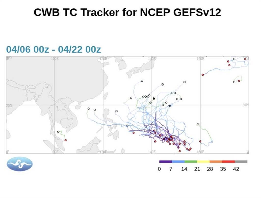 ▼中央氣象局局長鄭明典在臉書PO出一張熱帶氣旋追蹤圖,表示熱帶氣旋很少會在這一時段接近台灣,但它可能改變大呎度氣流,間接影響台灣天氣。氣象局表示,下週三、四(14、15日)模式模擬有熱帶系統產生,但強度、路徑還需要進一步觀察,如果成颱將是今年第二號颱風「舒力基」(Surigae)。
