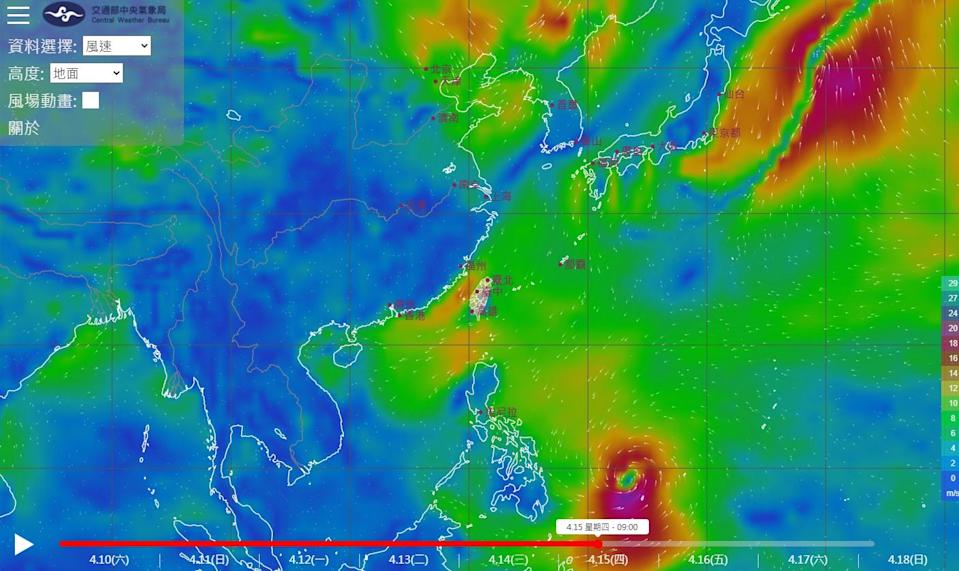 ▼從中央氣象局的風場預報顯示圖能看到,菲律賓東方海面上有一個低氣壓正在逐漸成形,它一路變大,並向偏西北方移動,15日就能發展出明顯的颱風眼牆,16日整體結構就相當完整。不過移動過程中,它並沒有登陸呂宋島,而是緩步北上移動。有網友認為,它可能成為今年第2號颱風「舒力基」(Surigae)!
