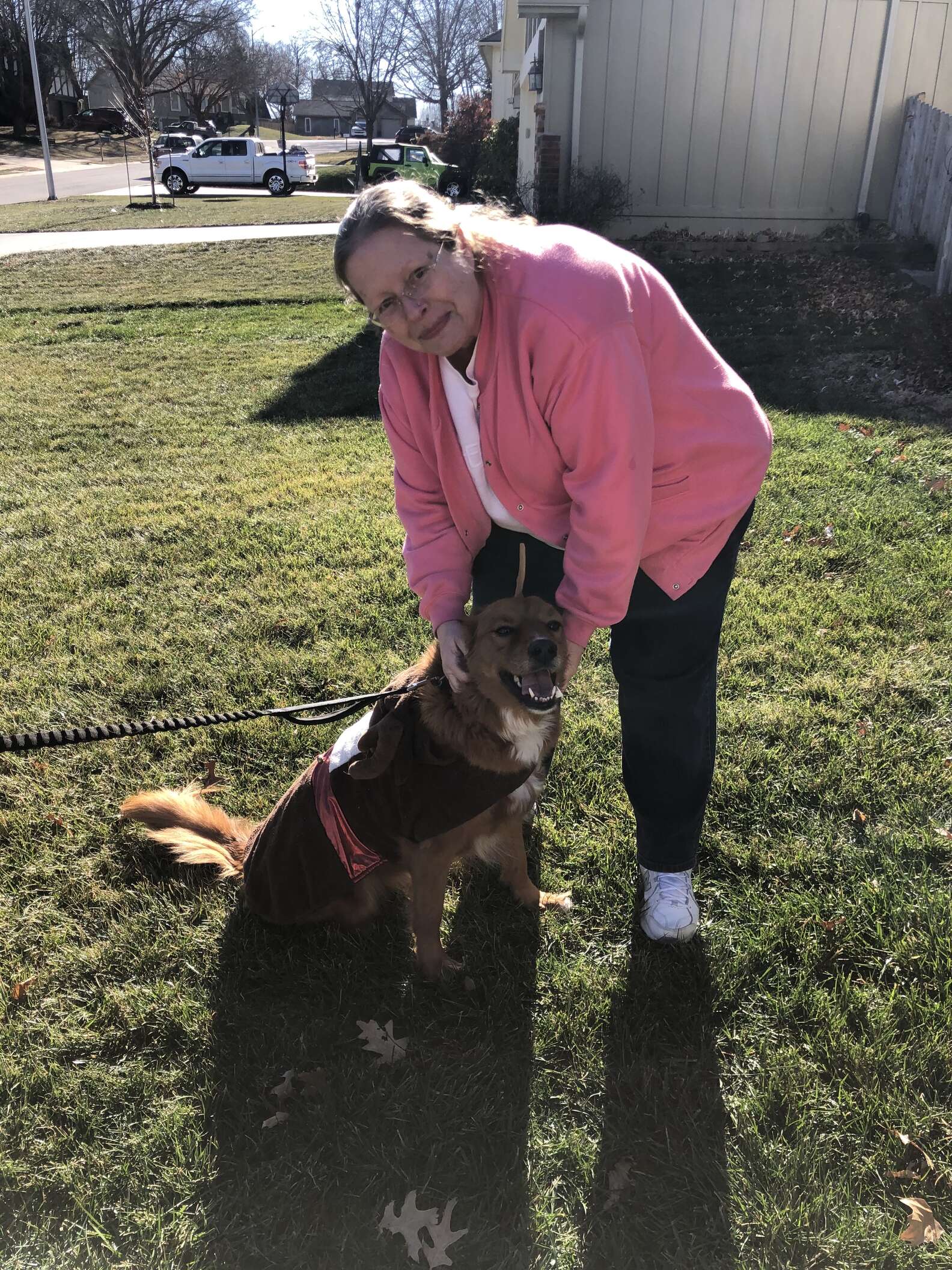 ▼Crimson很喜歡Susan,見不到Susan就會很沮喪。家人很開心牠能找到玩伴,Susan也能從中得到慰藉,真是兩全其美!Kyndra說:「我們早就認識Susan了,知道她跟狗狗成為朋友後,我們跟她之間的關係變得更親密。後來我們才知道,Susan是一個人住的,Crimson能給她帶去一些溫暖,我們也覺得很榮幸。聖誕節的時候我們還給她送去禮物,並給她和Crimson拍合照。」