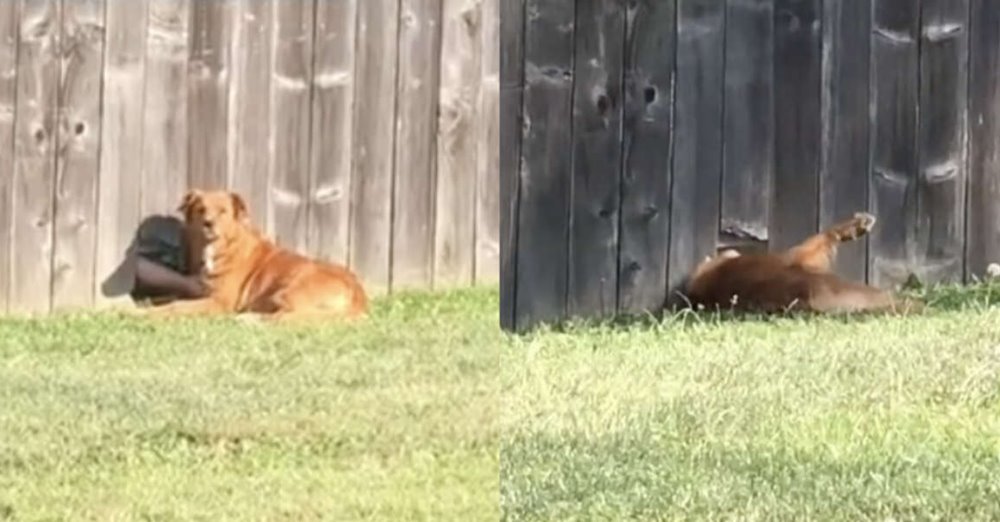 2021年04月13日國外網友Kyndra Pickens養了一隻叫Crimson的狗狗。Crimson非常親人,希望得到更多的愛和關懷。過去1年因為COVID-19,人們都待在家中,家人發現Crimson經常趴在後院的柵欄邊。那裡的柵欄上有一個大洞,原來隔壁鄰居正透過那個洞跟Crimson玩~