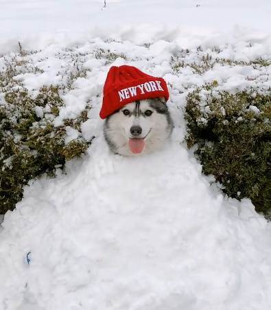 ▼哈士奇被埋在雪堆裡,只露出腦袋。主人看著自己的作品很滿意,狗狗也一臉開懷,任由主人為自己拍照留念。牠還微笑著伸出舌頭,好像在說:「只要你開心就好,我無所謂啦~」
