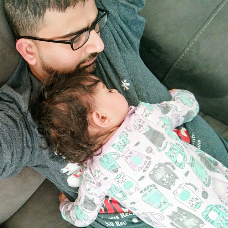 ▼4.「寶寶趴在自己身上安然入睡,這個世界上再沒有比這更讓人覺得幸福的瞬間了!」