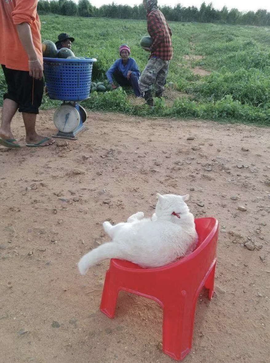 2021年04月22日天生臭臉經常被人誤會,明明沒有表情,只是在放空,卻讓人覺得脾氣很壞。泰國有一隻白貓「珍珠」,就是天生臭臉。牠表情兇兇的,陪著主人賣西瓜時吸引了不少人的關注。很多人說,看到牠的臉,就覺得一定要買一顆西瓜才行!