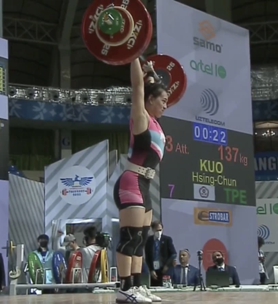 2021年04月20日台灣「舉重女神」郭婞淳在塔什干亞錦賽女子59公斤量級大有斬獲。她抓舉第3把舉出新世界紀錄110公斤,再加上挺舉137公斤,創下總和247公斤的世界紀錄。現在郭婞淳已經拿到2項世界紀錄、3面金牌,還拿到了個人第3張奧運門票~