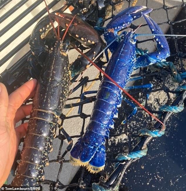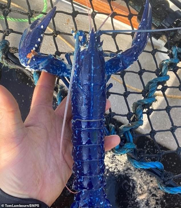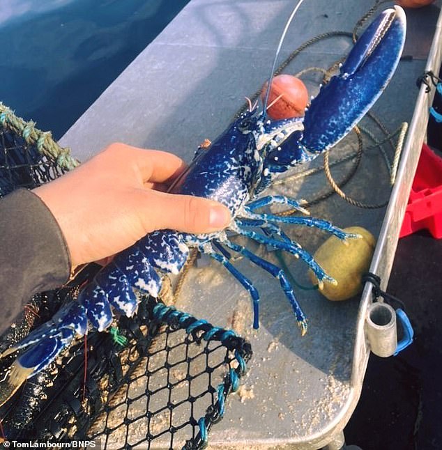 2021年05月06日平時我們看到的龍蝦都是紅色的,但25歲英國男子Tom Lambourn卻發現了一隻罕見的藍色龍蝦~他在英格蘭康瓦爾郡彭贊斯(Pensans)用蝦籠抓到了這隻30公分長的龍蝦。這種藍龍蝦出現的機率僅有200萬分之1,漁民們都認為捕到藍龍蝦代表著好運氣。