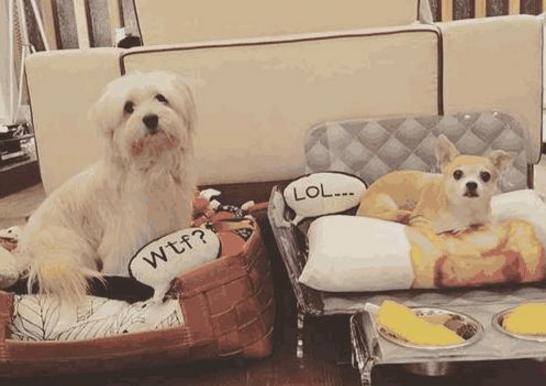 ▼客廳的另一邊有一對米白色的沙發,跟白色的牆壁和木地板搭配,看起來現代感十足,時尚又簡約。牆壁的電視下是深色的電視櫃。客廳中還擺著專門為狗狗訂製的迷你沙發,怪不得網友都笑說:「這些狗狗上輩子大概燒了好香!」