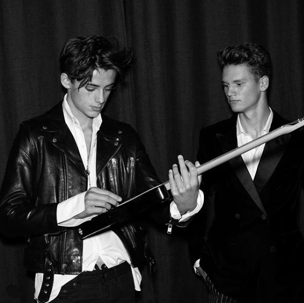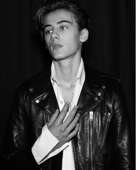 ▼William穿著白襯衫,搭配黑色機車皮衣,不羈的氣質非常迷人。黑白色調之下,他臉上的陰影加重,五官輪廓也更明顯,那完美的下頜骨很有男人味,完全看不出17歲男孩的稚氣。