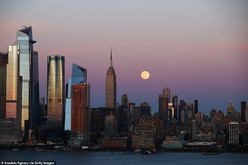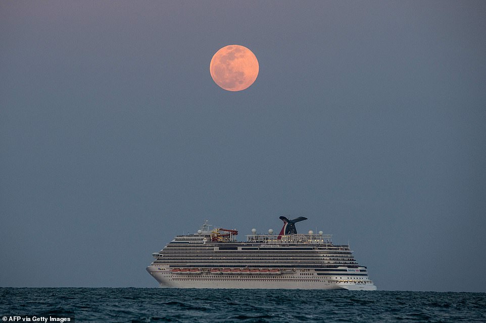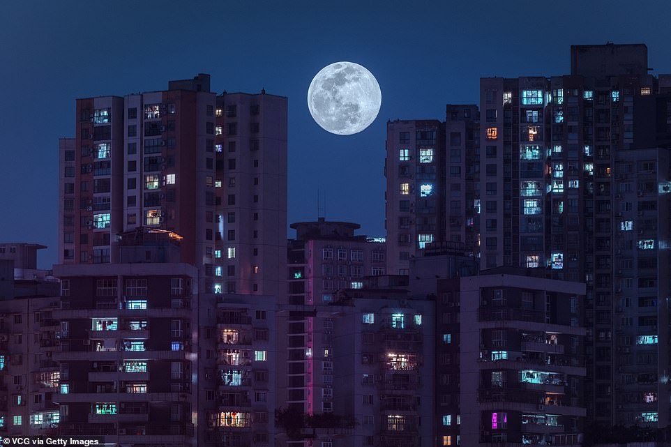 ▼超級粉紅月亮從天際線上升,不管在城市中還是海上,都能看到滿月升起的美景。