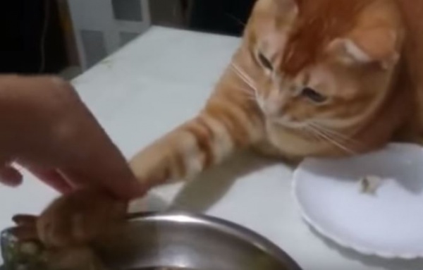 貪吃橘喵上桌伸出「鹹貓手」 主人阻止牠依舊頑強:不能吃摸摸也好
