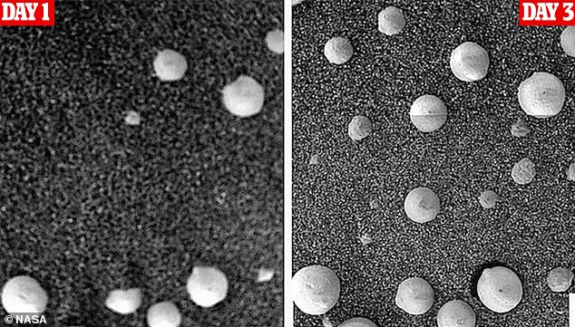 ▼這3位科學家表示,火星上的「蘑菇」會在幾天、幾週、幾個月的時間裡縮小、出現和消失。還有證據表明,火星上類似蒲團的真菌在「好奇號」留下的軌道上「重新發芽」。多年來,他們一直在篩選NASA的火星照片,並在很多場合分享他們的新發現。