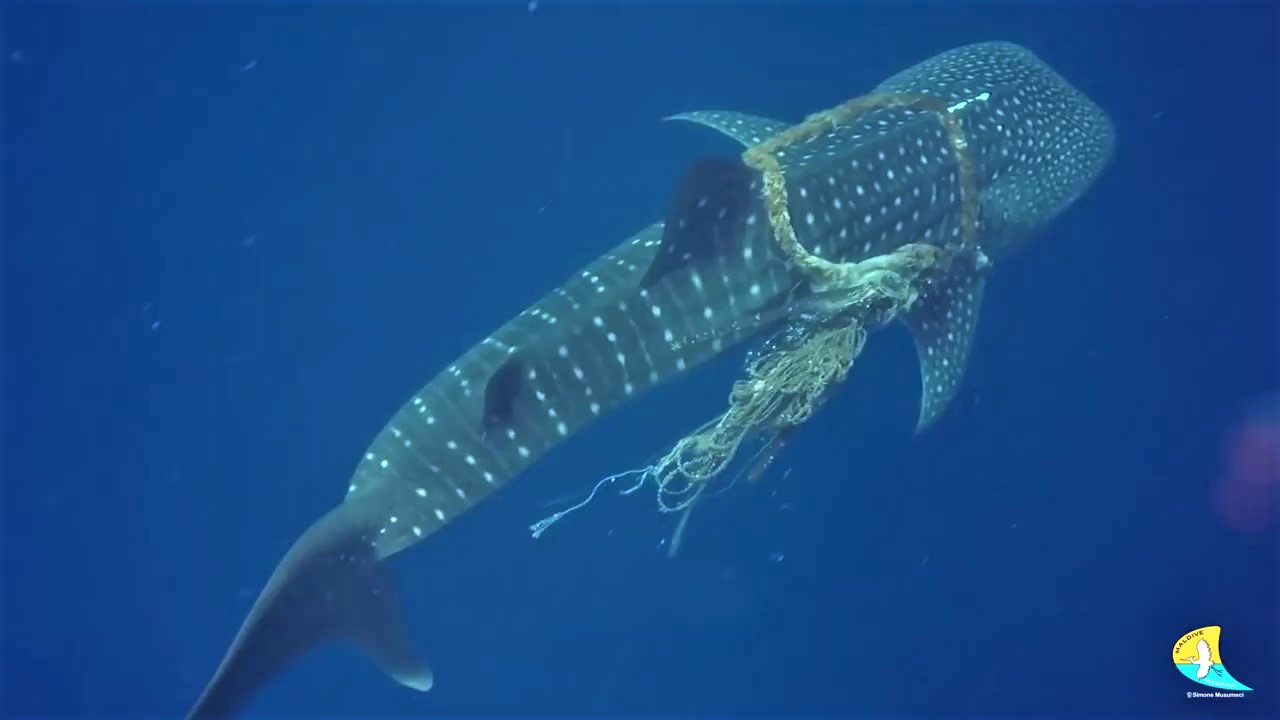 我不太舒服...潛水遇鯨鯊「主動靠近求援」 幫割斷繩索竟開心繞一圈:來擊掌~