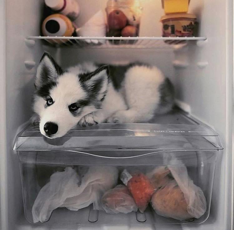 ▼「都說讓你開空調了,不然我就待在冰箱裡納涼。」