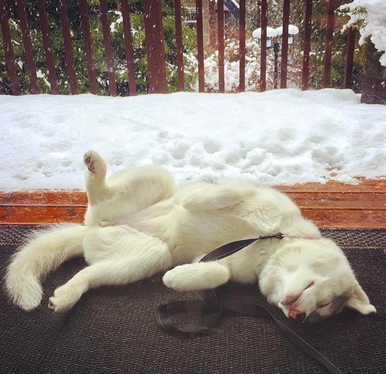 ▼雪下得太大,不能出門散步,那就睡個回籠覺吧。
