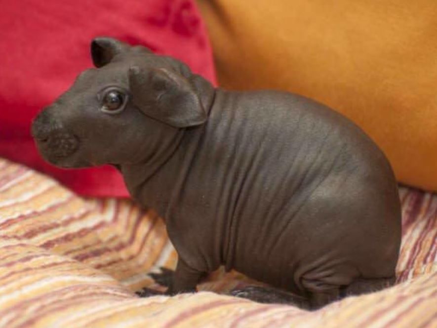 ▼無毛天竺鼠是實驗室無毛菌株和普通天竺鼠繁衍出的品種,這種無毛菌株與1978年首次發現的一種基因變化有關。到了1982年,無毛天竺鼠在實驗室繼續培育,現在主要用於皮膚問題的研究。