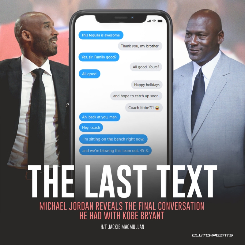 2020年1月底,柯比布萊恩(Kobe Bryant)因直升機失事身亡,他的親友,還有全世界的球迷都非常悲痛。「籃球之神」喬丹(Michael Jordan)跟布萊恩感情深厚,日前他公開布萊恩生前傳給自己的最後訊息,感嘆直到現在都捨不得刪掉。