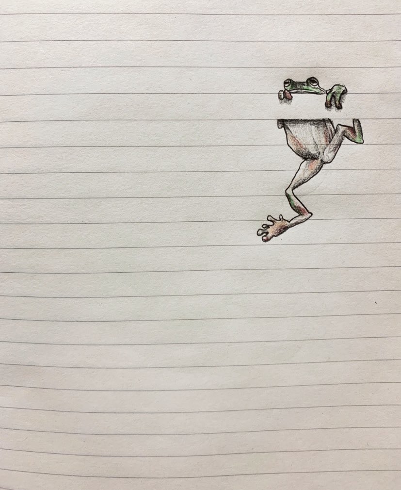 2021年05月17日筆記本也能變成畫冊!日本推主@harenatsu是一位很有創意的畫家。他曾分享過一系列筆記本上的隨筆塗鴉,只見他把紙上的橫線變成「梯子」,讓青蛙、貓咪等可愛的動物爬上去,那可愛的模樣引發網友大討論。