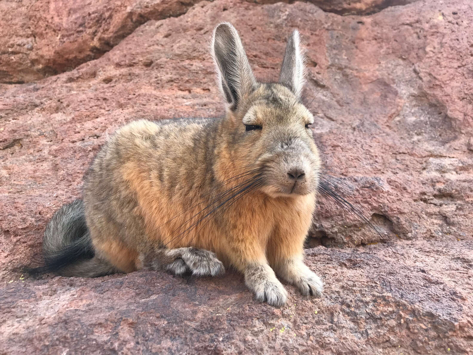 ▼兔鼠屬於大型囓齒類食草動物,原產於阿根廷、玻利維亞、智利與秘魯,往往生活在岩石和峭壁附近,習慣成群生活。牠們會在清晨與傍晚出來覓食,主要以草類、苔蘚和地衣為主。