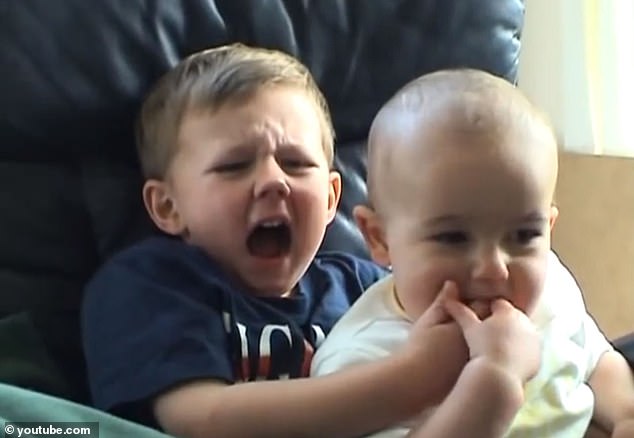 ▼短片中,這對可愛的兄弟溫馨互動,查理玩著玩著就抓起亨利的手指放到嘴巴裡咬下去。亨利不覺得疼,但還是說「查理咬我」。
