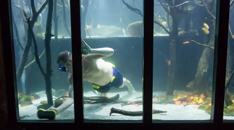 Jack家裡有那麼多水族箱,清理魚缸、餵魚要花大量的時間,但他不覺得麻煩,反而很享受清潔魚缸時,潛入水中跟魚兒一同暢遊的感覺。他看著魚兒游來游去就很滿足了~