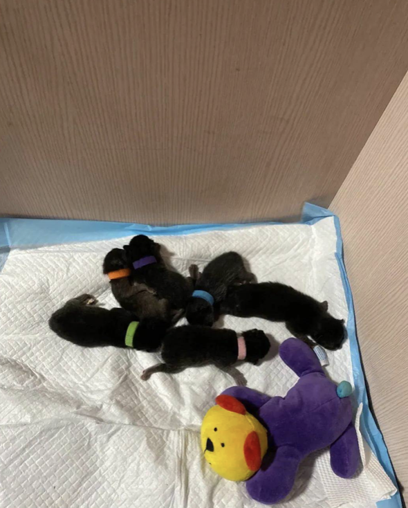 ▼小芳生下一窩黑貓,6隻黑色幼貓看起來都差不多,小萍和小珍就在其中。