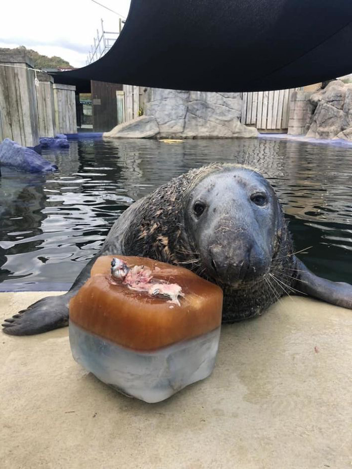 保護區的行銷與媒體負責人Georgina Shannon說:「Yulelogs需要動動腦筋才能吃到冰塊裡的魚!」魚魚蛋糕不僅能逗牠開心,還能給牠補充營養,希望牠能健康長壽,度過更多快樂的生日!