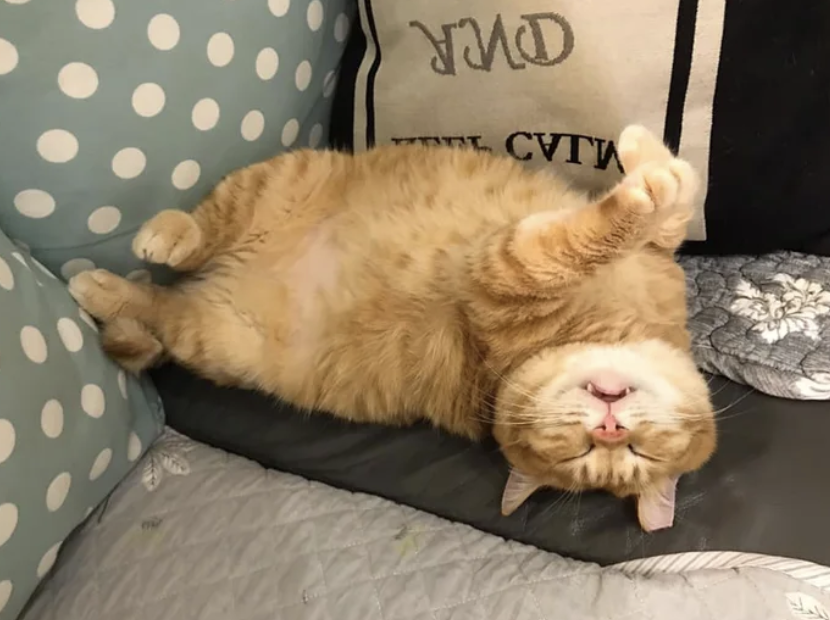 2022年06月05日彷彿看到上班的自己~新北市有一隻可愛的橘貓「肥祥」,牠沒有辜負自己的毛色,肥嘟嘟的肉肉都要溢出來。肥祥沒有其他的愛好,平時最喜歡睡覺。沙發上、地板上…任何地方都能成為牠的床。牠的睡姿非常可愛,不僅露出肥嫩的肚肚,還嘴巴開開,超級放鬆。