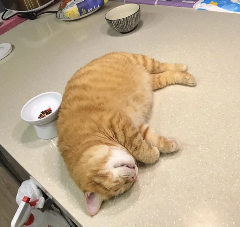 彷彿看見吃飽的自己! 好吃懶做橘貓「爽睡整天」攤肚皮:偶只是遺落人間的一條吐司~