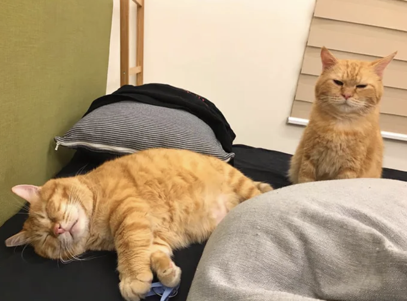 ▼肥祥的同伴是一隻叫「帥哥」的橘貓。帥哥的前主人在2019年時離開人世,這隻患有FIV的老貓一時之間變得無依無靠,肥祥的主人知道這件事後將牠帶回家。帥哥和肥祥很快成為了好朋友,兩隻貓貓相處得很好。