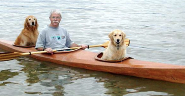 ▼後來David又養了第二隻小狗Ginger,他在獨木舟上又挖了一個洞,讓兩隻狗狗一起陪他享受划船的樂趣。