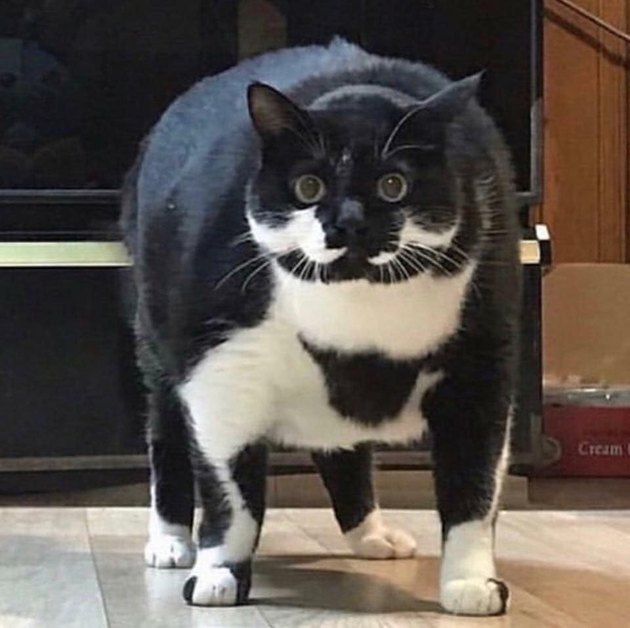 ▼這隻貓咪竟然有好身材。
