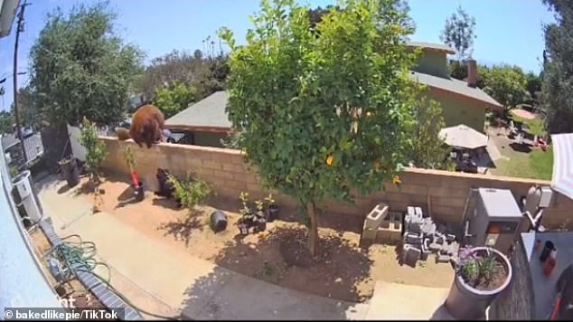 ▼後來Hailey解釋說,自己家在山區,現在是夏天,熊並不罕見。當時她聽到後院傳來狗吠聲,於是上前了解情況,結果發現有一隻熊媽媽和好幾隻幼熊站在牆上。大熊跟狗狗距離太近,她擔心有危險,「我第一個想到的是要推開牠」。
