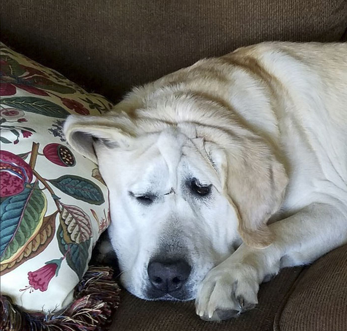 ▼Jamie說:「牠臉部畸形,繁殖出牠的人沒辦法賣掉牠。前主人根本不管牠,牠被丟在室外,過著孤獨、沒人愛的生活。在牠出生的前5年裡,都是這樣過來的。」
