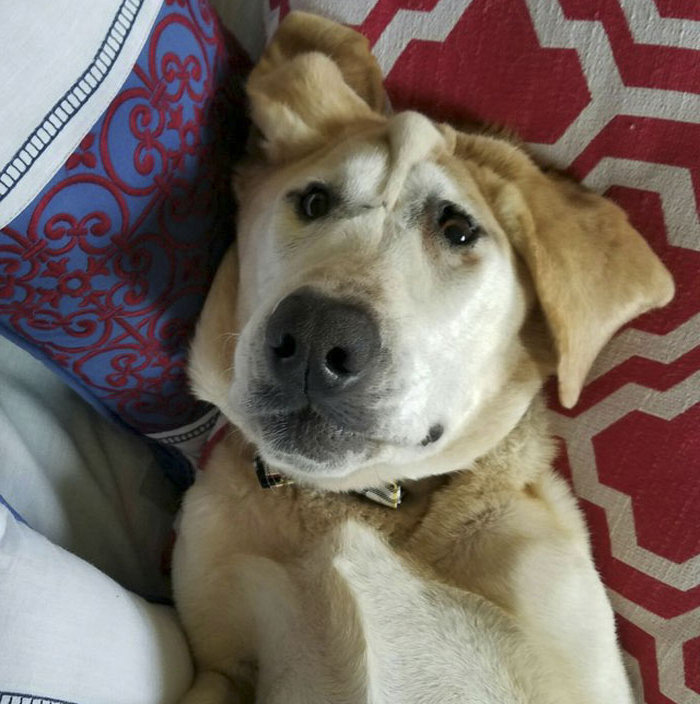 ▼Beaux在媽媽的子宮裡時,被同胎的五隻兄弟姊妹擠壓,導致臉部變形。但Beaux非常健康,而且聰明友善,是一隻很可愛的狗狗。