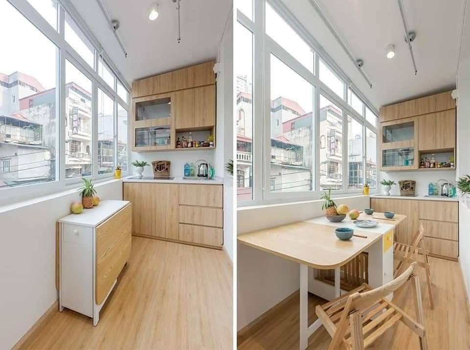 ▼原本臥室旁的陽台非常老舊,在設計師的巧思之下,陽台變成了充滿日式風格的簡約小廚房。