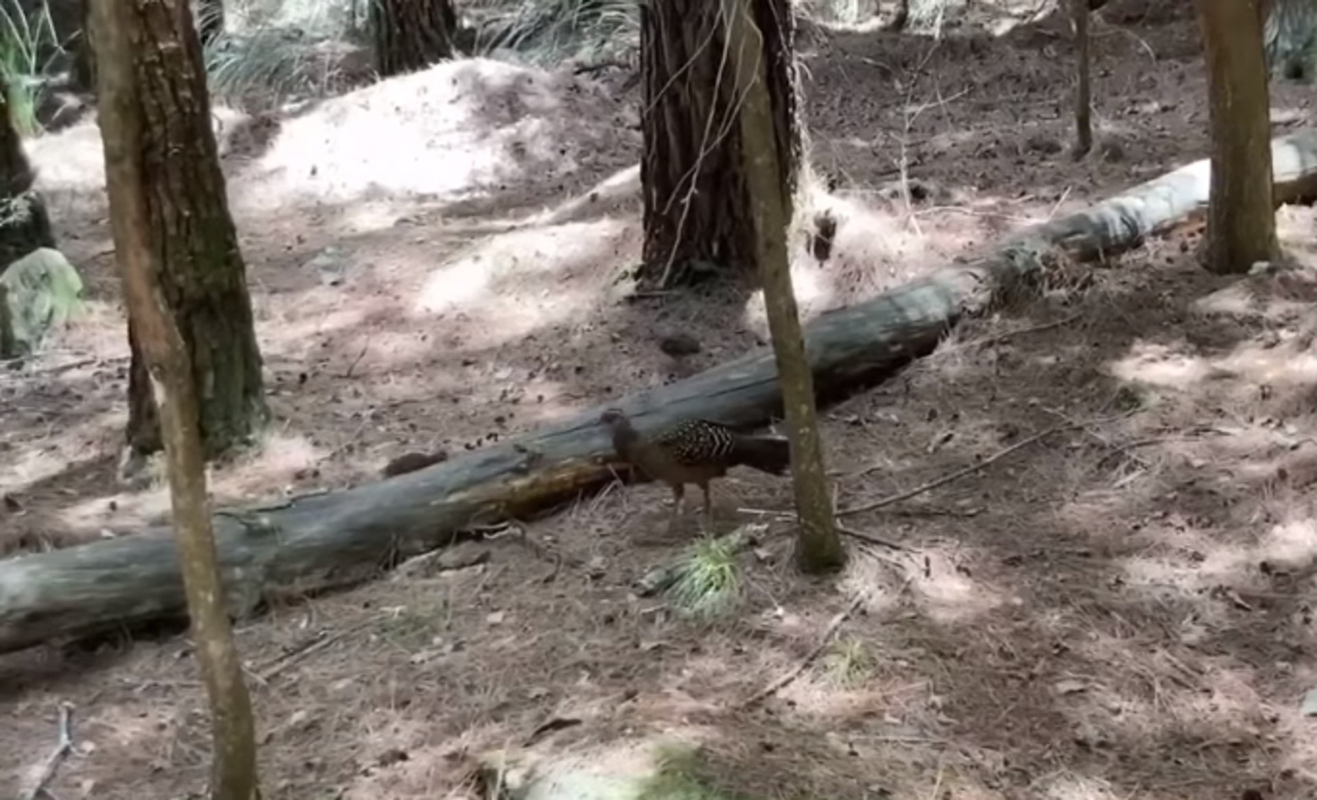 ▼武陵農場與東勢林管處巡護員到「桃山瀑布」巡時,偶然看到了不少罕見物種出沒。首先是被稱為「台灣最美麗的鳥」的藍腹鷴。藍腹鷴是台灣特有種的稀有保育鳥類,牠們羽毛華麗,又被稱為「華雞」。當時一隻母鳥正帶著三隻亞成鳥覓食。