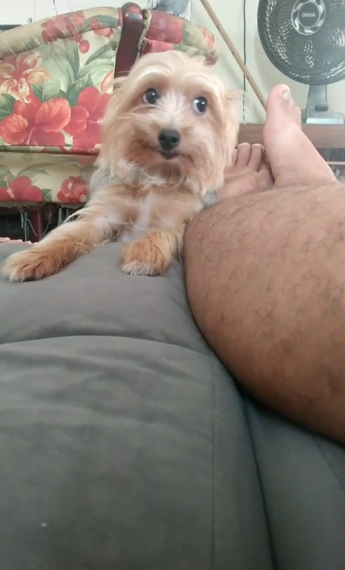 ▼有一天把拔躺在床上休息,Amora竟趴在床尾,一臉深情地看著把拔,希望把拔能摸摸自己。Amora見把拔沒有理睬自己,又使出更加強烈的撒嬌招數,對著把拔的腳又摸又蹭。