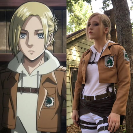 ▼最近國外推主@khoffkhoffkhoff分享了一組Cosplay亞妮·雷恩哈特的照片。她把一頭金髮紮起來,長長的瀏海遮住一部分臉頰,露出高挺的鼻樑、大大的眼睛,簡直跟漫畫裡的亞妮·雷恩哈特一模一樣。