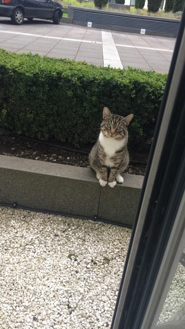 萌貓主動坐在門口 每天「乖等朋友」超有禮貌:請問牠能出來玩嗎?