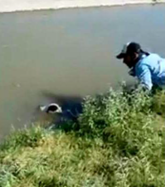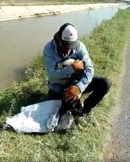 ▼Zarate和同事連忙停車過去幫忙。他本來想把編織袋扔到水裡,讓狗狗咬住,然後他將狗狗拉上岸。但那隻狗狗不知道在水中漂了多久,已經精疲力竭,根本沒辦法咬住編織袋。