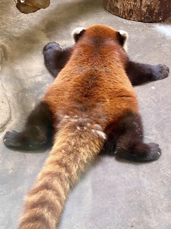 床がキンキンに冷えてやがる‼️#天王寺動物園 #レッサーパンダ #大の字でお昼寝中 #誰かな #redpanda pic.twitter.com/CE3gOL19ZC