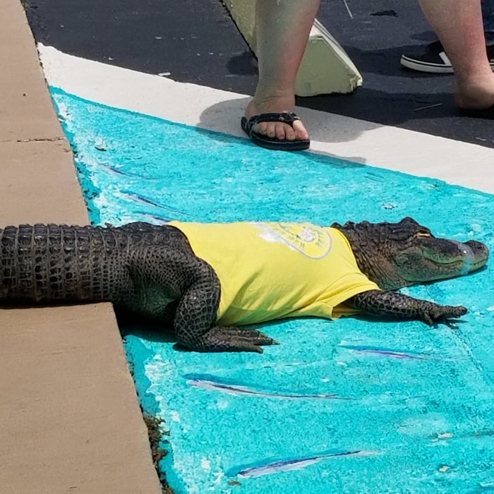 鱷魚穿上T恤,竟然乖巧得像一隻小貓咪,看起來超可愛,佛羅里達州果然不一樣啊~